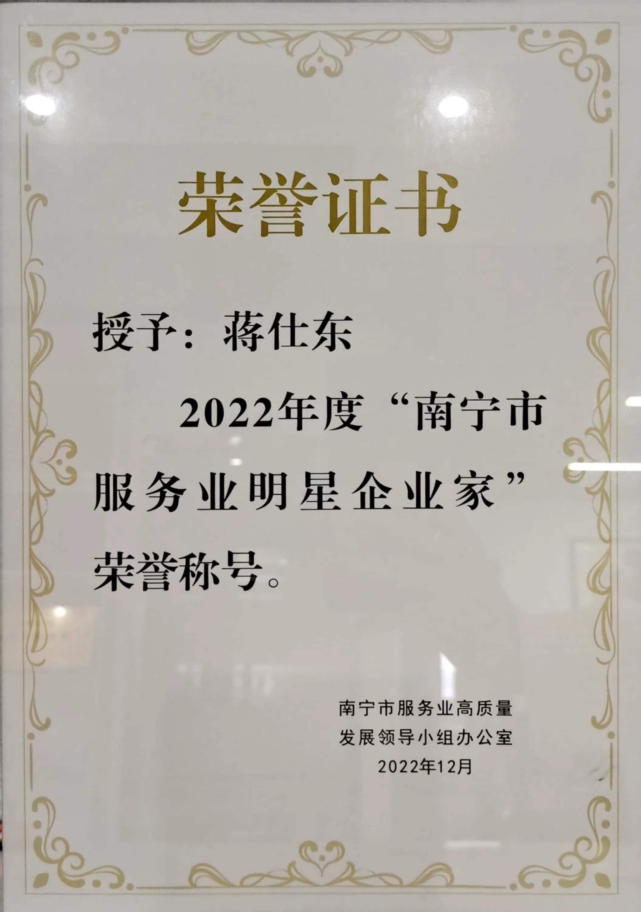 近日,南宁市人民政府办公室召开关于南宁市2022年服务业“百企见面会”暨服务业龙头企业表彰大会。经过评选,广西欢创人力资源有限公司被认定为“南宁市服务业龙头企业”;广西欢创人力资源有限公司总经理蒋仕东先生荣获“南宁市服务业明星企业家”称号!