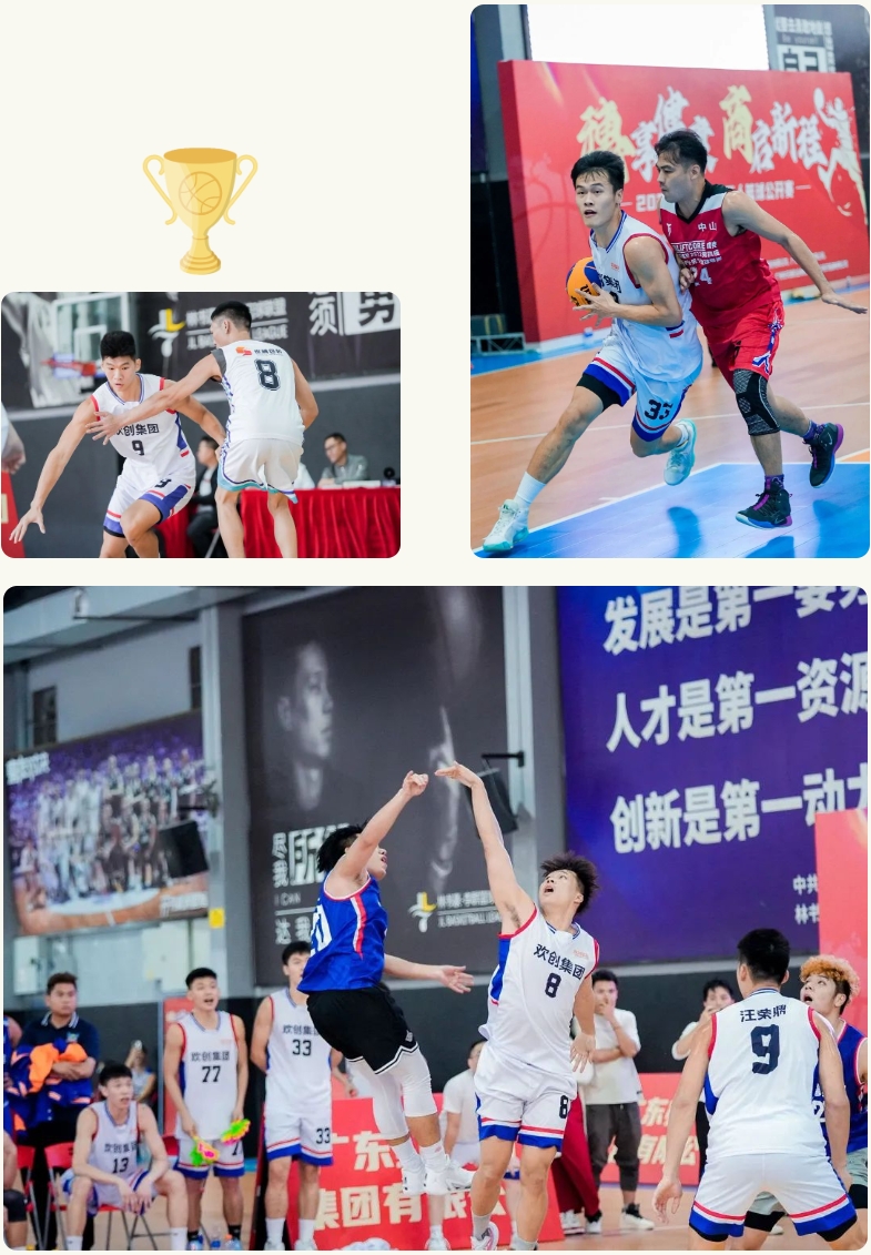 12月14日,欢创集团出征广州市工商联、广州市民营企业商会联合举办的“穗商杯”三人篮球比赛,欢创健儿组成2支队伍,奋勇迎战,展现实力,最终赢得季军。